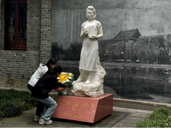 望江校区女生院旧址之上。带着无尽的崇敬与缅怀,全体党员在江姐纪念馆瞻仰革命烈士的风采。