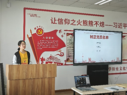 会议讨论了三位预备党员的转正事宜及确定了新一批发展对象和积极分子,党支部副书记曾莹同志宣讲关于学习党的二十大报告心得体会。