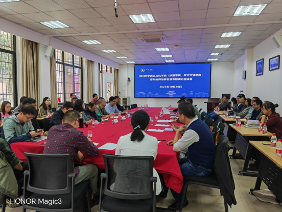 10月30日,历史文化学院(旅游学院、考古文博学院)在望江校区藏研所会议室召开青年教师培养发展专题调研座谈会。学校社科处处长熊林、人才工作办公室副主任刘丸源、教务处副处长孙克金,及学院领导班子成员、各系系主任、青年教师代表、相关科室同志共50余人参加了会议。会议由历史文化学院(旅游学院、考古文博学院)院长吕红亮教授主持。