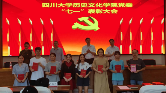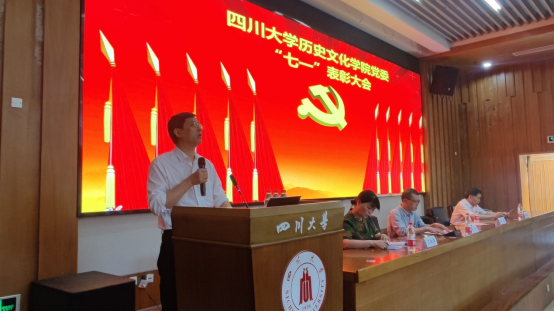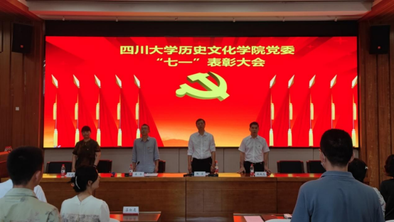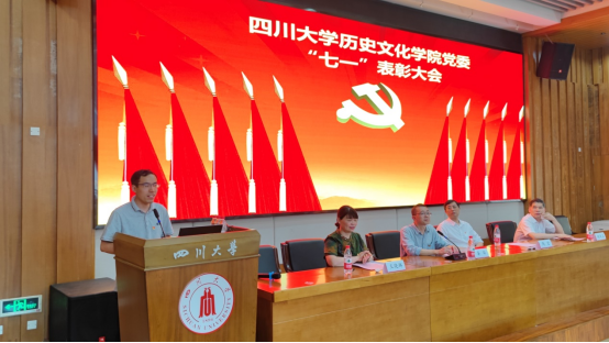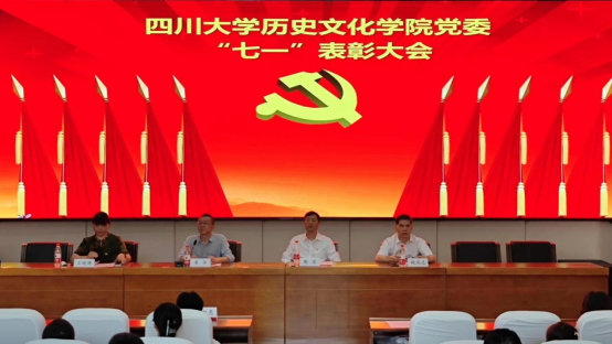 (旅游学院 考古文博学院)2022年“七一”表彰大会于江安校区文科楼二区学术报告厅召开。学院党委书记陶宏、党委副书记姜华、副院长鲍成志以及院工会主席王晓辉出席大会,学院各党支部书记及师生党员代表共60余人参加会议。会议由党委副书记姜华主持。