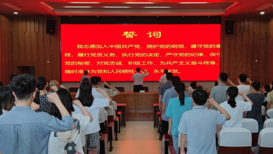 在庄严的中国共产党党旗下,党委书记陶宏同志领誓,新党员进行入党宣誓、老党员重温入党誓词,坚定表达了为共产主义事业奋斗终身的赤诚决心。