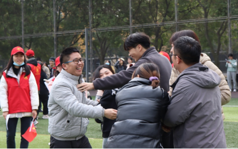 最开始进行的是热身游戏——“五毛一块”,游戏要求同学们根据裁判的所说数字,迅速做出反应抱成团,与裁判所说数字不匹配的小组将被淘汰。该游戏成功活跃了现场气氛,充分调动起大家的积极性。