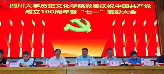党委庆祝中国共产党成立100周年暨“七一”表彰大会于江安校区文科楼二区学术报告厅召开。学院党委书记陶宏、院长霍巍、党委副书记姜华、副院长鲍成志、李志勇、王果,以及博物馆副馆长周静和院工会主席王晓辉出席大会,学院各党支部书记及师生党员代表共100余人参加会议。会议由霍巍院长主持。