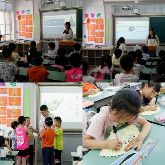 活动开始以文字为主题,展示“礼”字不同时期、不同形式的写法,讲述文字演变的过程。之后,通过播放成语故事《程门立雪》的动画视频,向小朋友们讲述师生之礼。“行礼”环节,支部成员自学了几组古代日常礼仪,向小朋友们演示并加以讲解。最后的“书礼”环节,介绍了“折扇”这一传统文化的重要载体,以大家熟悉的诗歌为引导,鼓励小朋友以书画方式装饰折扇。活动设置多处互动环节,活动现场气氛热烈、效果良好,得到了班级老师的肯定。