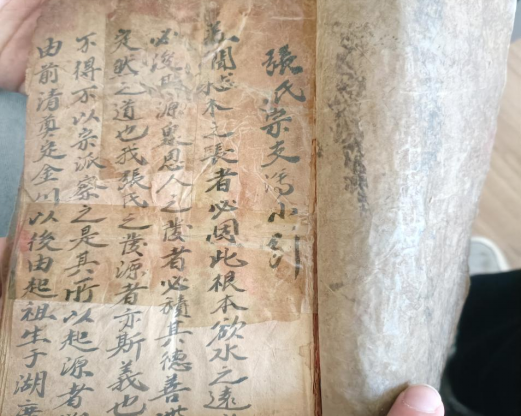 8月3日,徐老师带领学生前往独脚沟悬空寺,在寺内参观苯教壁画,了解藏地古老信仰。次日,回到金川县城寻访张氏族谱。在此期间,队伍采访张姓族人,记录其家族口述历史及祖源传说,切实体会到嘉绒地区汉藏二元认同体系并行杂糅的社会现实。