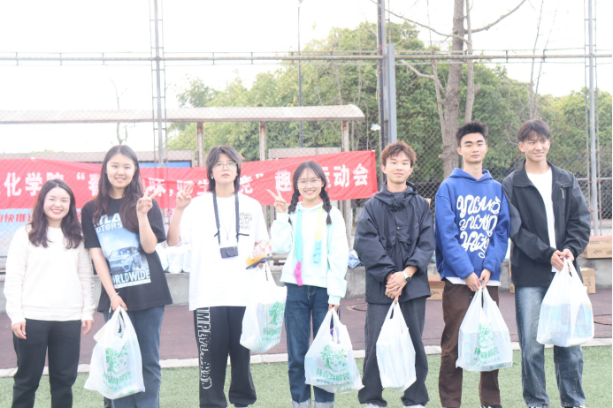 经过精彩又激烈的数轮比赛之后,最终决出了此次运动会的前三名。第三名来自本科二年级的第四组,第二名为来自本科三年级的第五组,第一名为来自研究生二年级的第七组。竞赛结束后,由老师们为获奖团队颁发奖品并合影留恋。至此,本届“春日趣味,师生共竞”趣味运动会在大家的欢笑与掌声中落下帷幕。