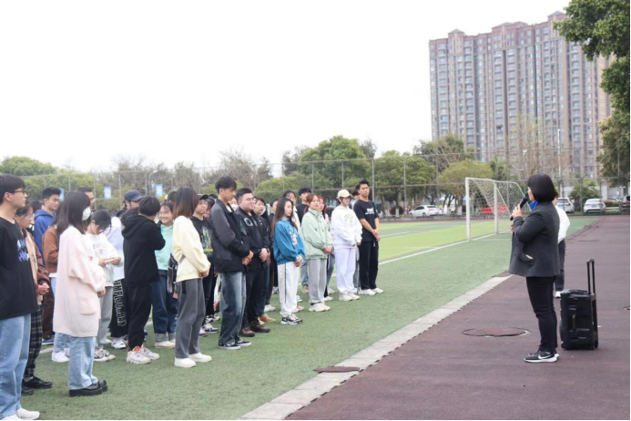 工会主席王晓辉老师代表学院致辞,王老师表示学院历来重视同学们德智体美劳全面发展,身体健康是大家最重要的财富,特别是疫情之后,大家一定要走出寝室,积极参加体育活动,确保身心健康。另外,师生之间需要更多的沟通交流渠道,此次趣味运动会也正是更好地贯彻学校党委对学生工作新要求、新精神的一次有益尝试,希望更多的同学和老师能够参与其中。