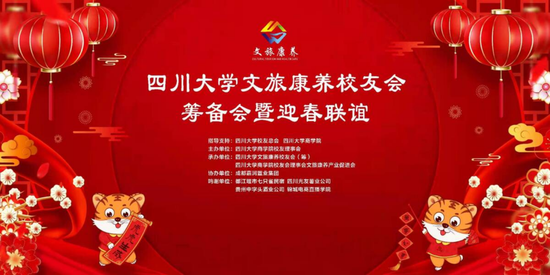 文旅康养校友会筹备会暨迎春联谊会在成都举行。校友总会、商学院相关负责人参加了会议,与川大商学院校友理事会文旅康养产业促进会核心骨干齐聚一堂共襄文旅康养融合创新发展盛举,同话川大校友协同互助美好未来!