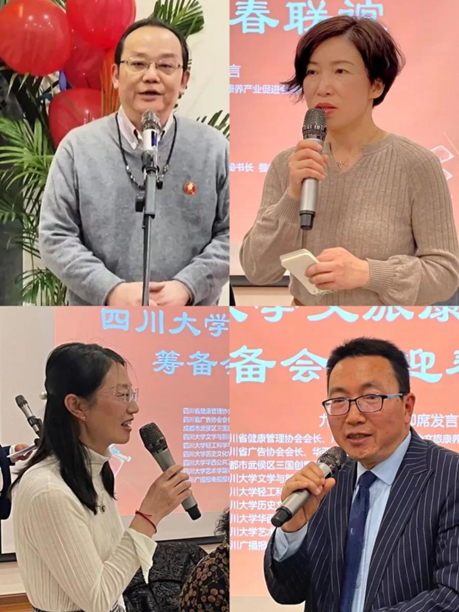 华西公共卫生学院党政办院办主任、院校友会秘书长姜春萍,四川广播报电视报值班编委张业,成都市武侯区三国创意园管委会副主任赖可坚等表示将全力支持文旅康养校友会的筹备工作。