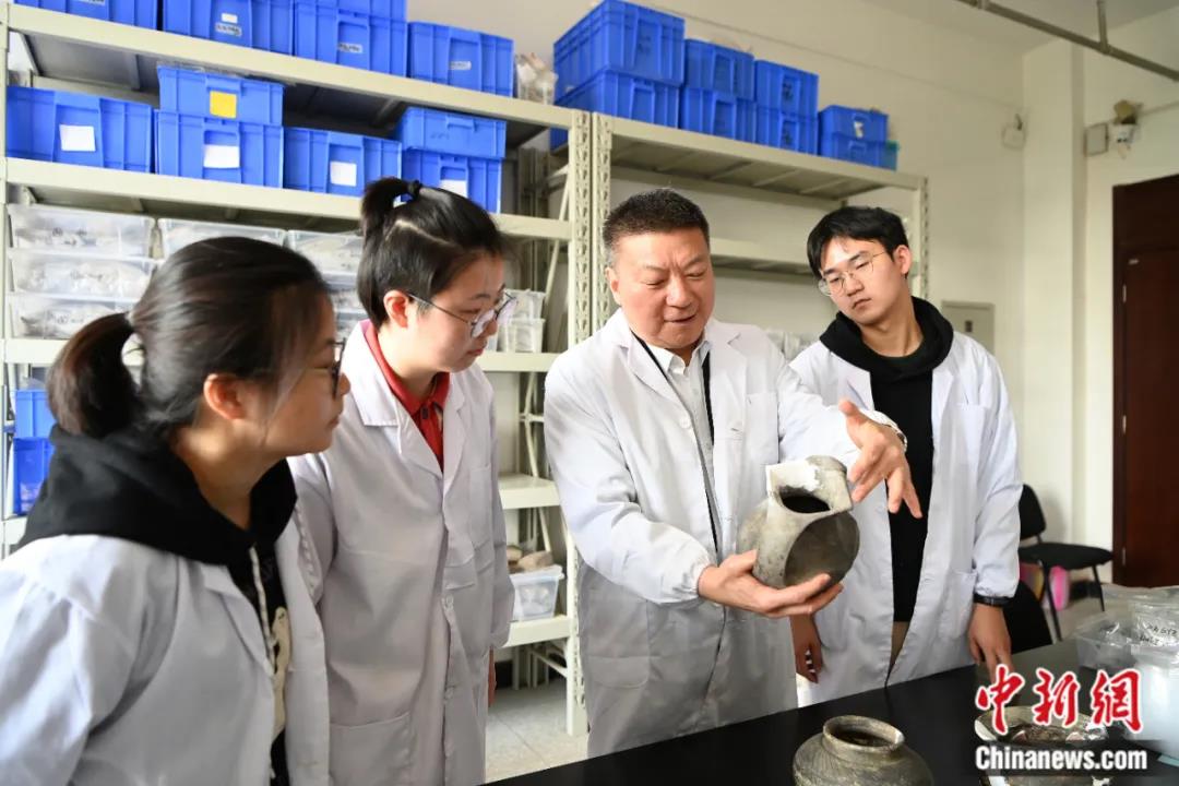 霍巍在实验室为学生授课。中新社记者安源 摄