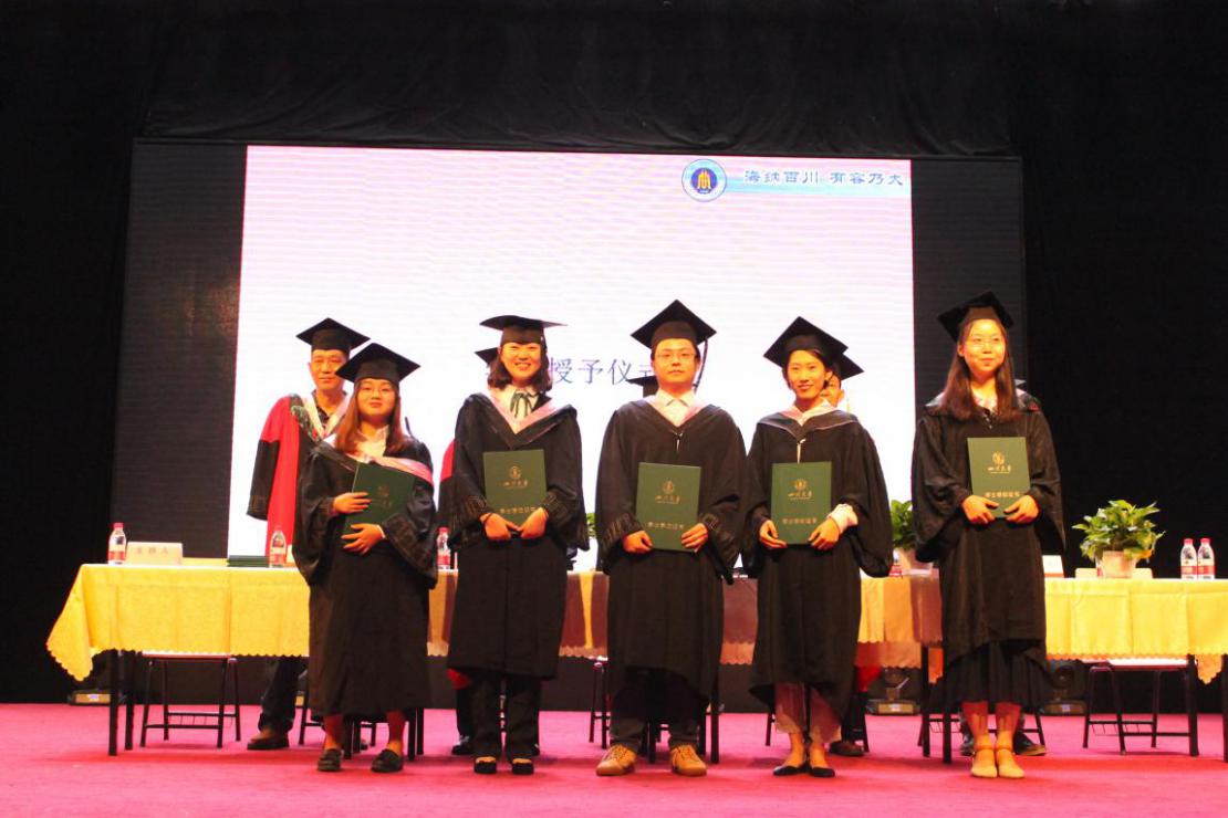 在学位授予仪式上,86名本科生、研究生分组走上主席台,由学院领导李映福、鲍承志,考古系罗二虎教授、赵德云教授、吕红亮教授,为他们逐一拨流苏、颁发学位证书,并合影留念。