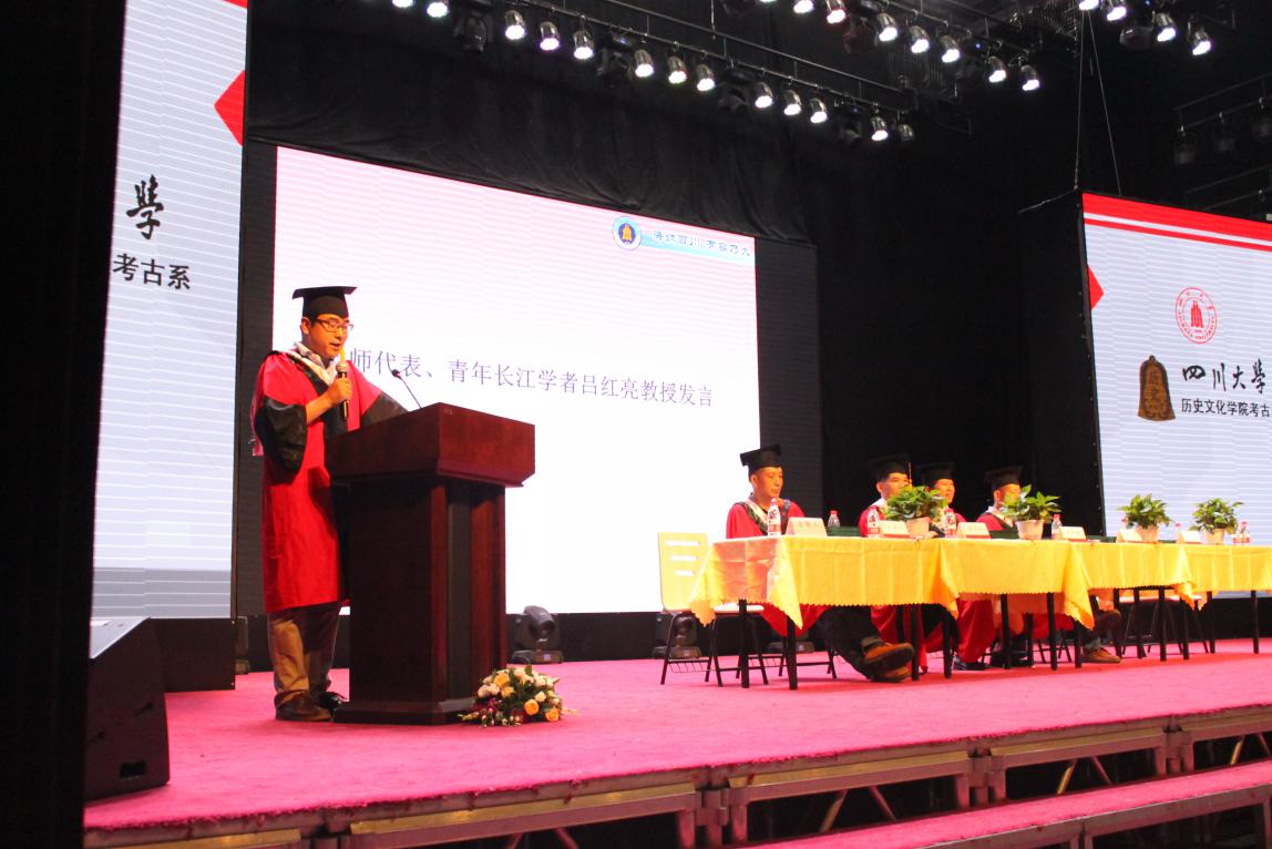 副院长李映福教授在致辞中,首先对考古系2018届毕业生表示祝贺,并对辛勤培育他们的老师和父母表示感谢。李映福教授对毕业生提出了几点希望:第一,做一个快乐的考古人。考古学是一个包罗万象的学科,同学们毕业后要去充分享受考古带来的快乐;第二,做一个吃得了亏的快乐人。毕业意味着很多同学第一次真正走进社会。社会是另一个世界,另一趟旅程。在这趟旅程中最重要的就是学会吃亏,了解吃亏的意义;第三,做一个知行合一的社会人。将学校所学与社会实践相结合,努力回报社会。李映福教授希望大家毕业后不忘川大,不忘川大考古,能够反馈学校,反馈社会,有时间多回来看看,祝大家前程似锦!