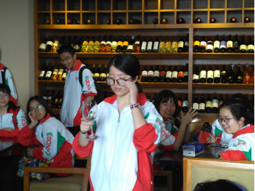 品酒实验室,实验室内先进的品酒设备和品种各样的红酒很快吸引了同学们的注意力。