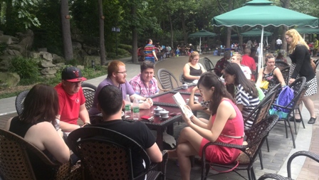 从博物馆出来已近正午时分,大家似乎忘记了饥饿,一行人一致决定向望江楼公园进发。公园内茂林修竹,绿树参天,在喧闹的市中心显得别有洞天。走在幽静清凉的小道上,园内各式各样的竹子格外引人注目。不远处传来的阵阵嬉闹之声引着大家前往,看着各种似乎深奥难懂的棋牌,老成都闲适的茶馆场景一目了然。一个外国朋友惊讶于这些老年人甚至可以在此坐上一天的时间来消磨时光。但谁说这是他们的专利?于是,各人点上一杯花茶,坐下来,在绿树的荫蔽下,吹着府河的凉风,身旁响起掏耳郎叮叮当当的叫卖声。这一刻,“老外们”也做了回地道的成都人。