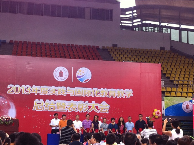 体育馆举办的“2013年度实践与国际化教育教学总结暨表彰大会”中,校党委书记杨泉明教授宣读了《巴卡漫画