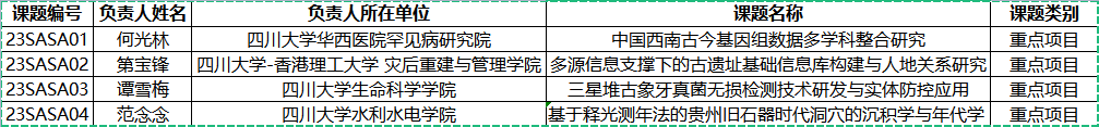 考古科学中心开放课题重点项目立项名单
